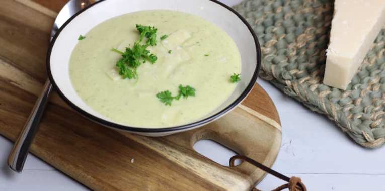 4. Parmesan und Zucchini in die Suppe geben und alles ordentlich verrühren. 8 Minuten köcheln lassen.