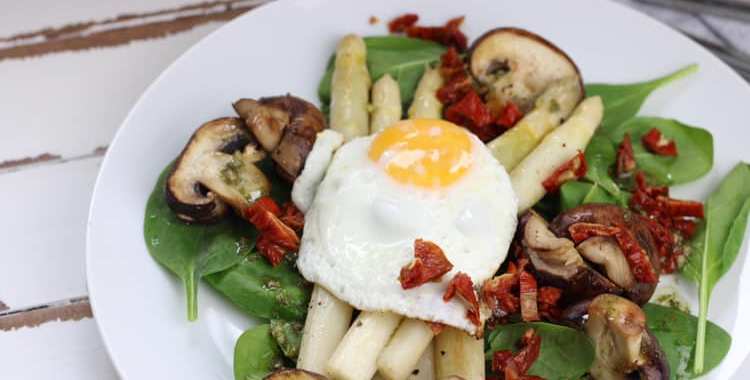 Gebratener Spargel an Babyspinat