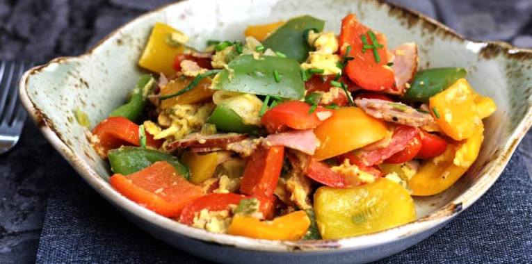 Ein weiterer Klassiker der tiroler Küche. Statt Kartoffeln habe ich Paprika genommen, so hat man ein Lowcarbgericht. Es schmeckt super und sättigt alle. Vegetarier lassen einfach den Kasseleraufschnitt weg.