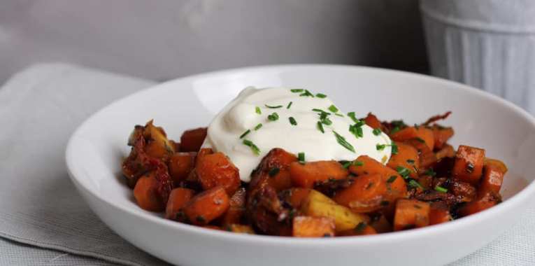 4. Dip anrühren und dann mit der Pfanne servieren.