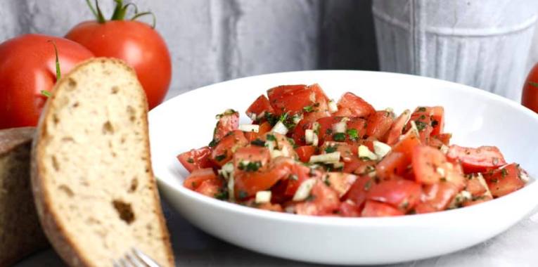 Frisch, leicht, kühlend. Dieser Salat mit einem Stück Brot ist einfach herrlich.
