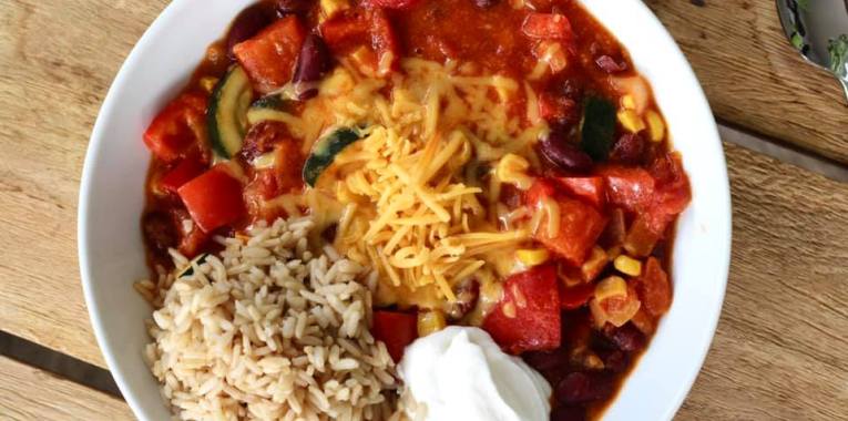 6. Erst Texmex auf Teller füllen, dann Reis, J
