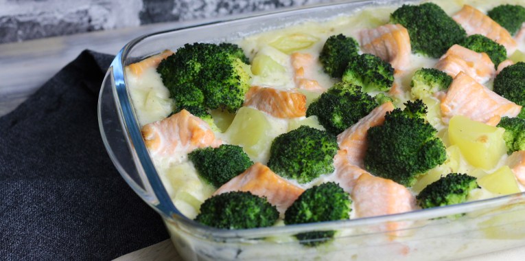 Einfach nur lecker. Vegetarier lassen den Lachs weg. Dieses Gratin ist fix gemacht.