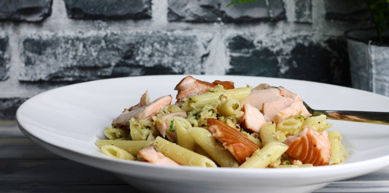 Penne mit Petersilienwurzelpesto und Stremellachs