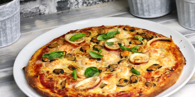 3. Käse verteilen und dann die Meeresfrüchte. Pizzen dann 18-20 Minuten backen.