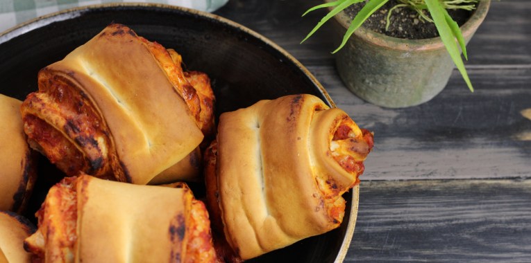 1 Rolle Pizzateig mit Tomatensauce