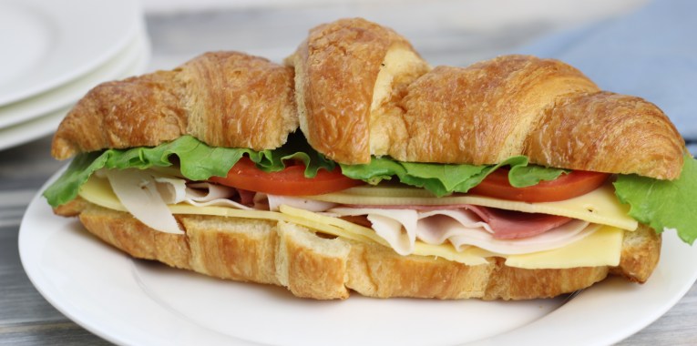 Croissant geht auch herzhaft 😉 Heute als Samstags-Snack! Geht auch vegetarisch mit entsprechendem Aufschnitt oder mehr Gemüse.