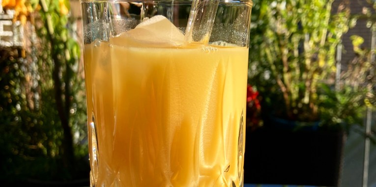 - Orangensaft auf die Gläser verteilen und Batida aufgießen.