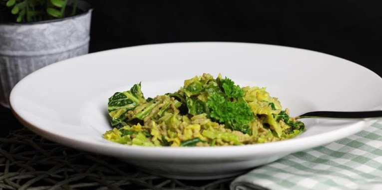 Wirsing geht nicht nur als Beilage. Statt Spinat kann man auch Wirsing in ein Curry geben und mit wenig Aufwand sowie wenigen Zutaten zaubert man sich ein schmackhaftes Gericht.