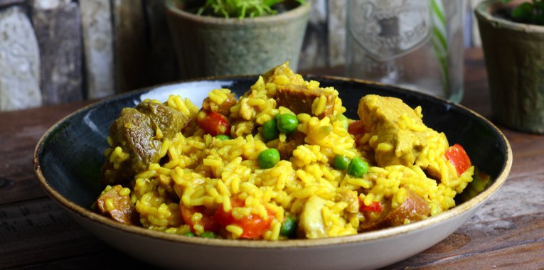 Olé España! Der traditionelle Klassiker aus Spanien von Uncle Bens selbst in knapp 30 Minuten zubereitet. Total frisch und lecker. Vegetarier werden schnell fertig sein, da sie das Fleisch nicht zubereiten müssen. Statt Geflügelfond nimmt man Gemüsebrühe.