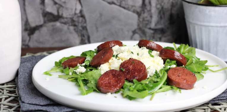 Einmal bei türkischen Händler durch die Gänge gegangen und zack einen Salat gebastelt. Wer es weniger salzig mag, nimmt einfach normalen Hüttenkäse.