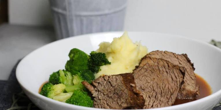 Rinderbraten an Püree und Brokkoli