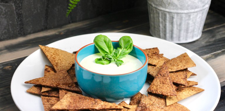 Im Nu einen kleinen Snack für die Terrasse oder den Abend auf der Couch zubereiten. Welchen Dip ihr wählt oder selbst herstellen mögt, bleibt euch überlassen. Ich habe hier einmal Vollkorntortillawraps genommen, deswegen die dunkle Farbe. Mit Weizen sind sie heller.