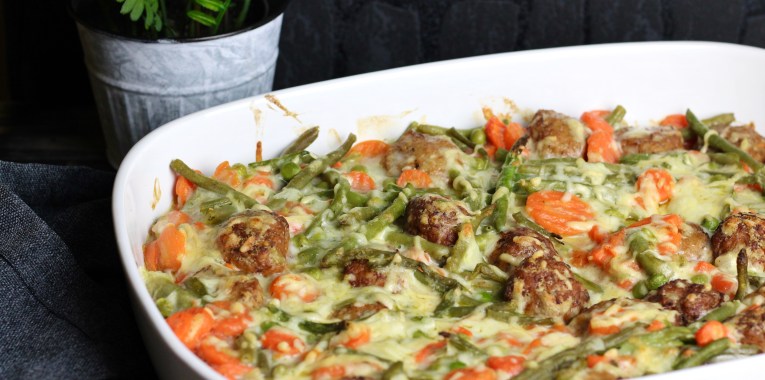 Herbstlicher Hackbällchen Gemüseauflauf