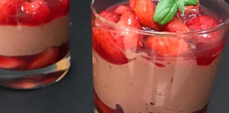 Ich liebe Erdbeeren und Schokolade. Beides zusammen schmeckt herrlich als Dessert.
