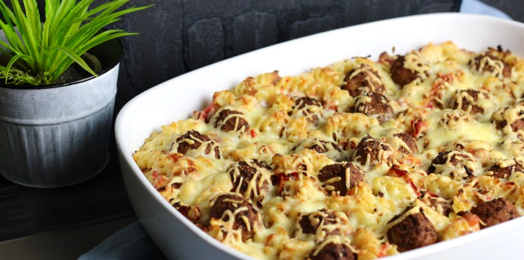 Ein schneller Auflauf, der cremig und vollmundig daherkommt. Ohne Bällchen ein flottes vegetarisches Gericht.