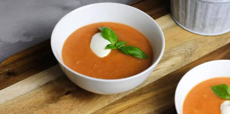 Wenig Zeit? Nur kleinen Hunger? Dann ist diese Suppe das Richtige. Mit einem Klecks Creme fraiche und Basilikum schmeckt sie super.