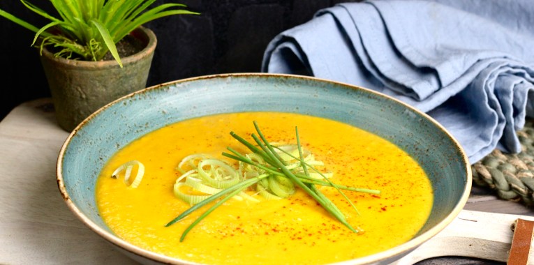 Grob geschnittenes Gemüse und Kokosmilch vereinen sich hier mit feuriger Note zu einer lecker Suppe. Unbedingt ausprobieren.